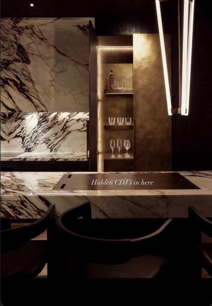 マーブル大理石のテーブルトップをくり抜いてCDJが埋め込まれているそうです↓。