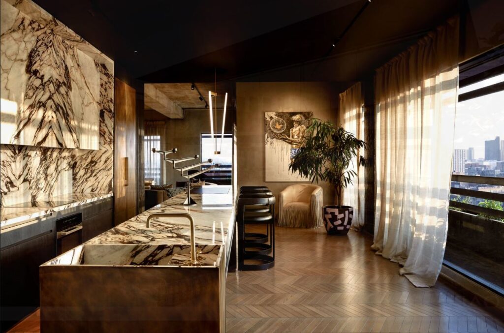 南アフリカのヨハネスブルクにある、Black Coffee(ブラック・コーヒー)の豪邸。グラミーアーティストというよりも、レコードレーベル運営やエンジェル投資家など、もはや実業家として成功している彼ですが、これはホテル内の敷地に、国内の有名な建築家とのコラボで作られた、オリジナルインテリアのペントハウス。